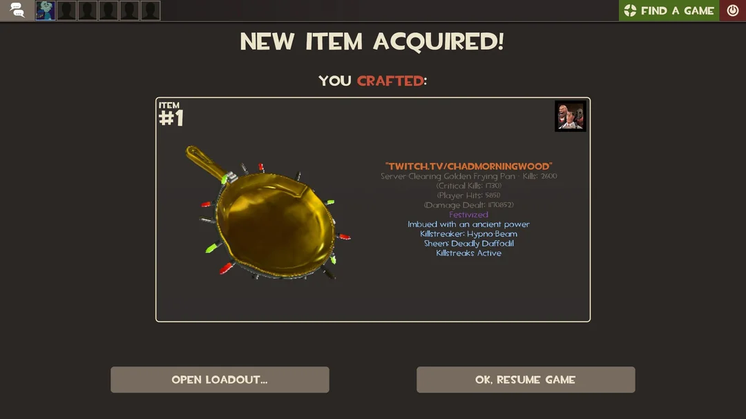 During the Smissmas 2025 update, Valve introduced a way to festivize 87 more items. One of those items was the Golden Frying Pan.