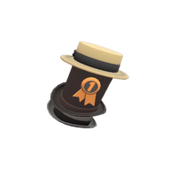A one-of-a-kind cosmetic item for all classes. It is a Towering Pillar of Hats with a 1st place orange ribbon pinned onto it.