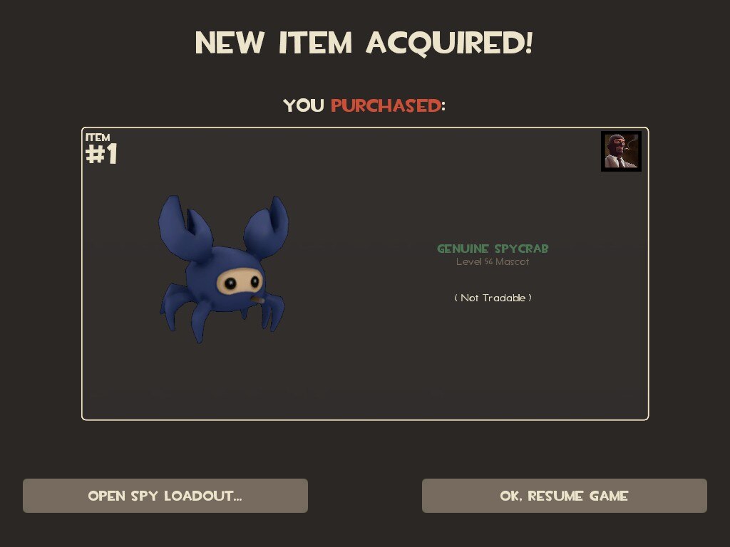 This item is awarded in Genuine quality to players who purchased a Spycrab Plush from the Valve Store or WeLoveFine and activate the code sent with it.