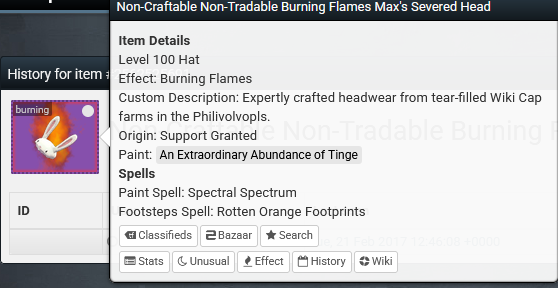Ultimately, Valve removed this item and person had to choose a different cosmetic, which was a Burning Flames Max's Severed Head.